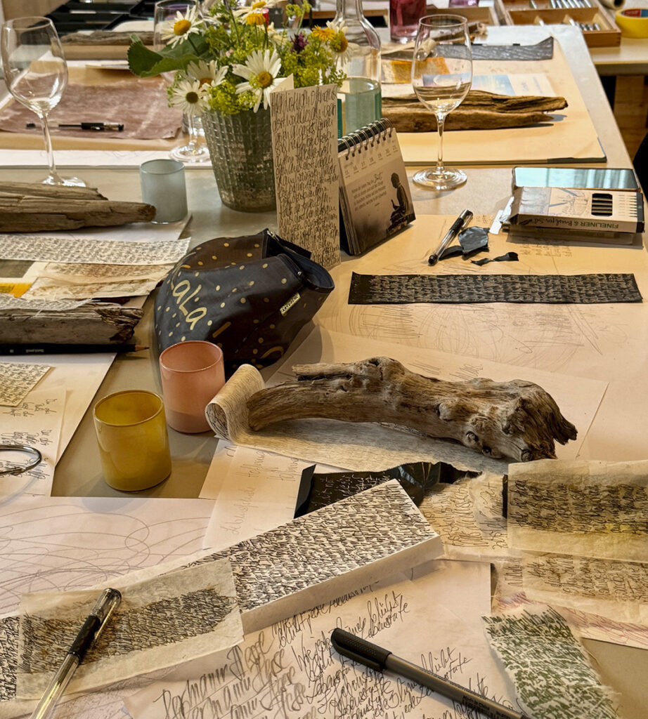 Neben zahlreichen Ausstellungen biete ich in meinem Atelier inspirierende Workshops an. Es macht mir viel Freude, in der Gruppe gemeinsam kreativ zu sein und dabei mein Wissen weitergeben zu können.